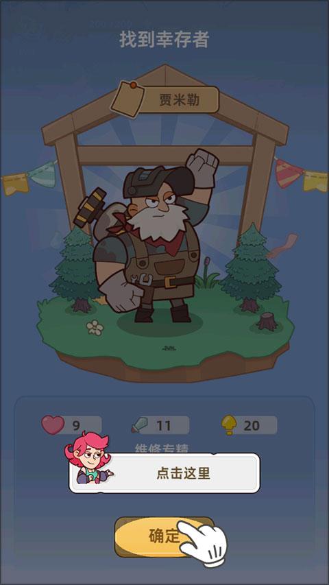 3、完成游戏指引,只需要靠近物体角色会自动攻击,随后完成指引,会获得一位幸存者;