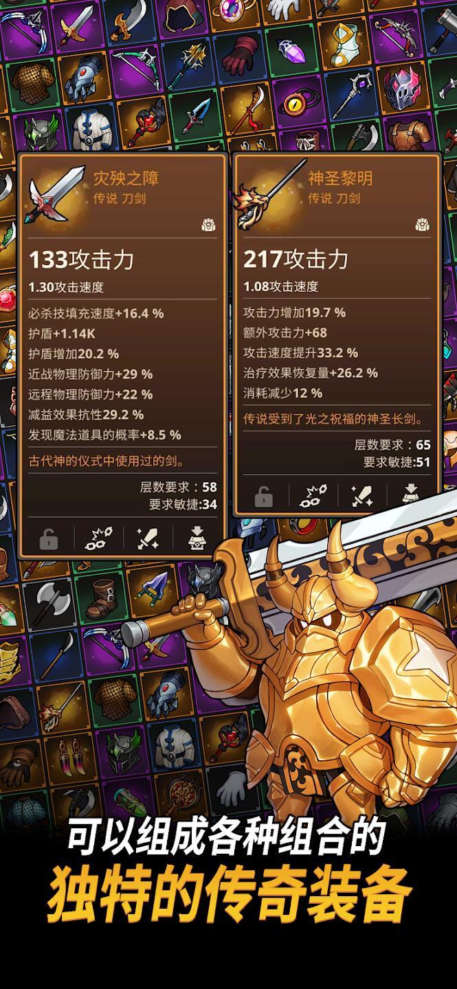循环地牢放置RPG免广告版是一个极为考验策略能力的一个放置类型游戏,游戏中玩家可以通过自己的组合,形成各种战略战术,游戏可以组合成独特的传奇装备,就算游戏关闭也可以进行自动运行,是一个很不错的游戏。解锁免广告获取奖励,直接获取胜利,需要魔法上网。