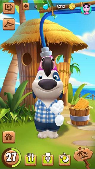 等到再长大一点,汉克狗还会多一项洗澡的程序,你进入软件可以看到汉克狗非常的脏,就像家里的小狗一样,一身的泥,这个时候你就需要给他进行洗澡了。