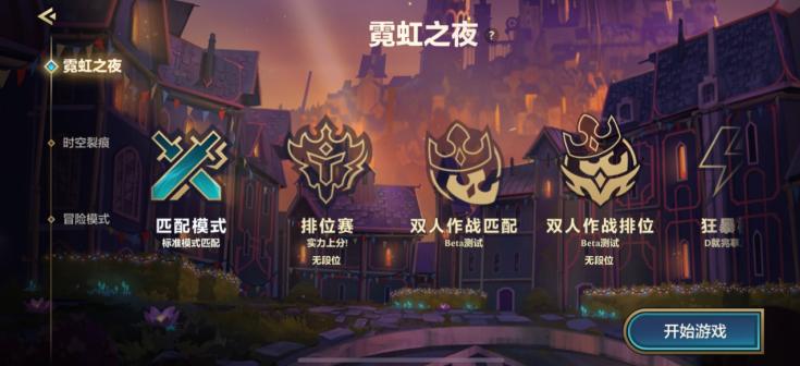 霓虹之夜,霓虹之夜里有包含匹配模式、排位赛、双人玩法和狂暴模式。