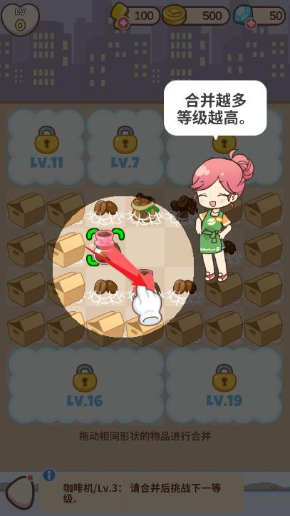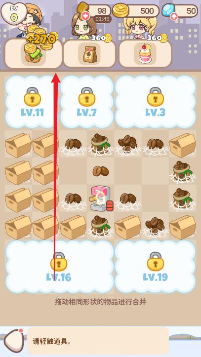 -合并面包、咖啡和水果!结合相同的物品以升级为更高级的物品。