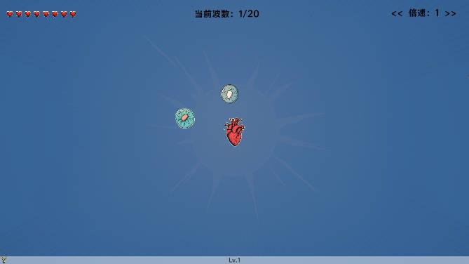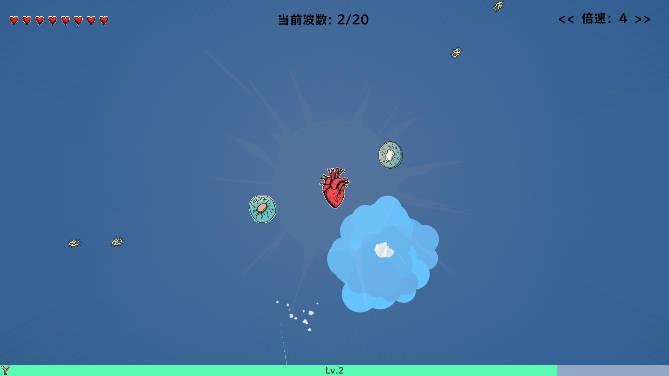 3、进入游戏后,使用手指拖动细胞,去消灭其他入侵的细胞,保护好心脏,在右上角可以设置游戏的倍数,加快游戏进程。