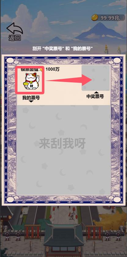 彩蛋2:出巡中票号处可购买彩票,把彩票上的招财猫拖到中奖号码处可触发彩蛋,此时中奖号码刮开会是88,开奖区会出现9个88。