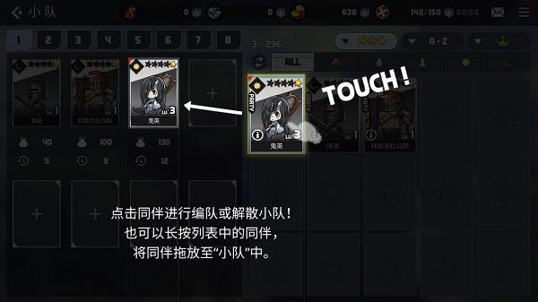 7、阵容编辑:点击同伴进行编队或解散小队,也可以长按列表中的同伴,将同伴拖放至小队中。