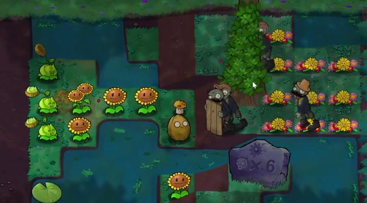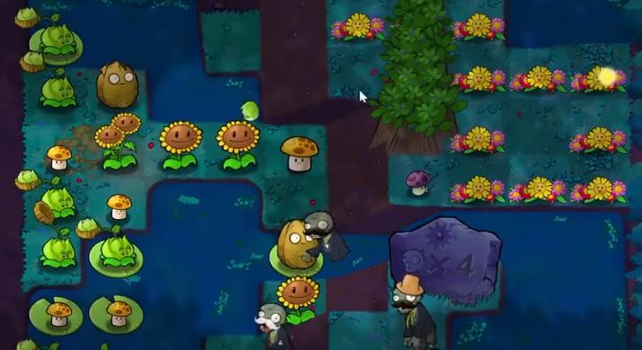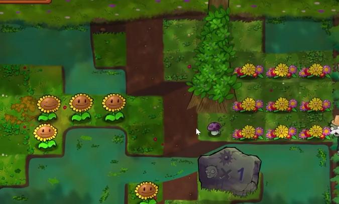 新地图-沼泽平射植物攻击将被土坡阻挡,坡上无法种植,无天光,大面积树荫、水域,树荫将大幅影响向日葵等植物产光能力,阳光石碑每一段时间重置击杀任务,时间内完成获得大量阳光