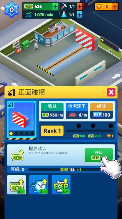 游戏中,您可以解锁不同类型的碰撞测试区域,如侧撞、翻车测试、前后撞等,增加测试类型能够拓展实验室的业务范围。每新增一个测试区域,都能增加更多的测试项目和收入来源。