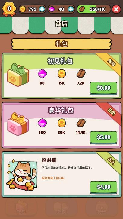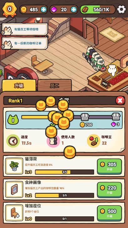 作为咖啡店的老板,玩家需要管理猫咪员工来生产咖啡原材料。可以招聘不同品种和技能的猫咪员工,如擅长采摘咖啡豆的猫咪、擅长烘焙咖啡豆的猫咪等。