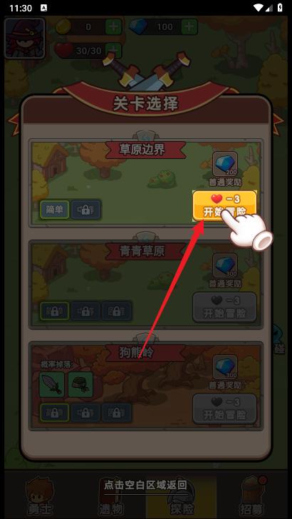 2、选择你的关卡开启冒险