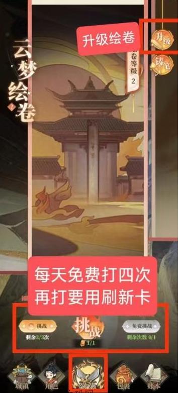 绘卷挑战:每天玩家可免费挑战绘卷4次。通过挑战绘卷,玩家有机会获得装备、灵玉等稀有材料,能够快速提升角色的战斗力。绘卷玩法增加了游戏的趣味性,让玩家体验到闯关的成就感。