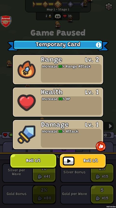 3、获得临时卡可给生命力、攻击力、防御力升级。
