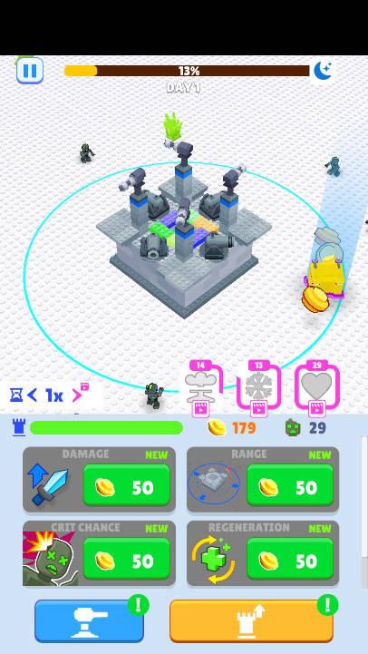 在升级界面中,玩家可以选择提升塔的攻击力、攻击范围、攻击速度等属性。根据僵尸的种类和进攻的形态,合理选择升级重点,可以提高防御塔的效率,帮助玩家更轻松应对更强的僵尸。