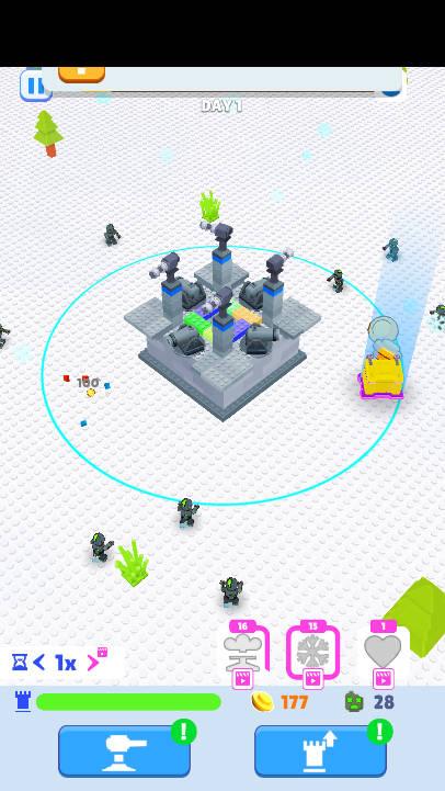 玩家需要在地图上合理布局防御塔来阻挡僵尸的进攻。防御塔种类繁多,每种塔有不同的攻击方式、范围和伤害,玩家需要根据僵尸的种类和进攻路线来选择合适的塔进行布置。