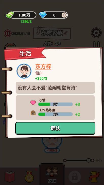 游戏通过对家族成员的生育、教育、婚姻等系统的精心设计,让玩家体验到深度的家族经营乐趣。通过合理安排和培养,你能看到家族从一穷二白到百亿财富的成长轨迹,带来强烈的成就感。