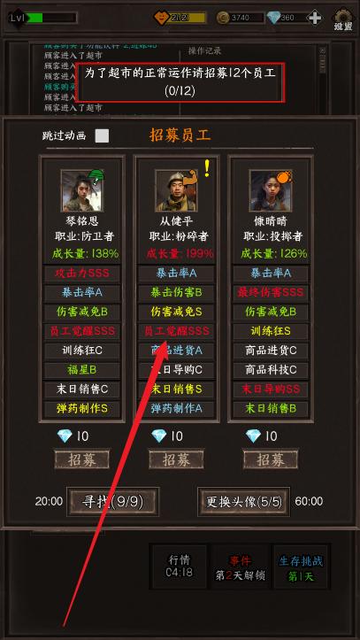 3、超市员工通过招募系统获得,员工词条属性随机刷新,可进行员工合成进行高品质词条叠加。