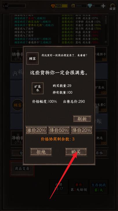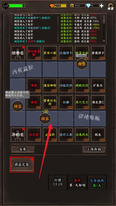 3、购买顾客的一些道具进行交易