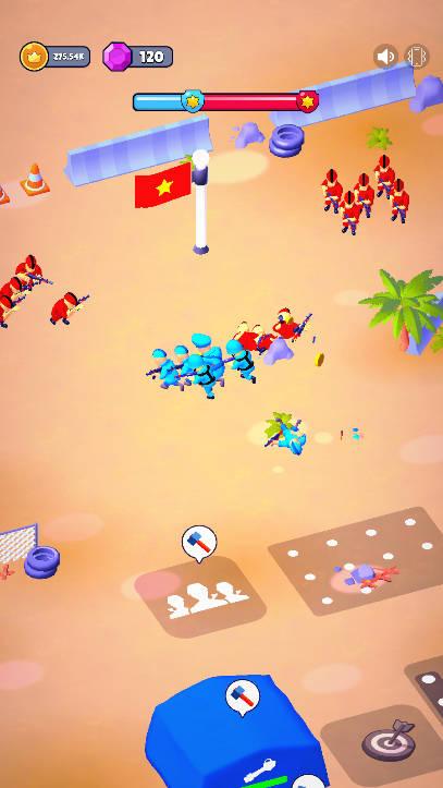 玩家需要通过赚取金币和资源来不断招募和训练不同类型的士兵。每个士兵有不同的属性,如攻击力、防御力、速度等。随着游戏的进展,可以解锁更多种类的士兵,并通过升级他们的等级来增强战斗力。通过强化军队来应对越来越强大的敌人。