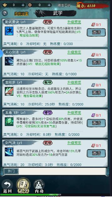 3.新手建议商城购买武学残页,迅速将武学等级提升至5级,性价比极高。进阶玩家建议提升至10级。
