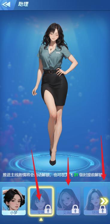 3、其他的助理可以在剧情内容解锁,也可以通过提升主角等级来解锁