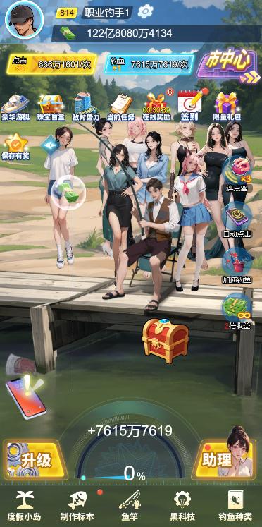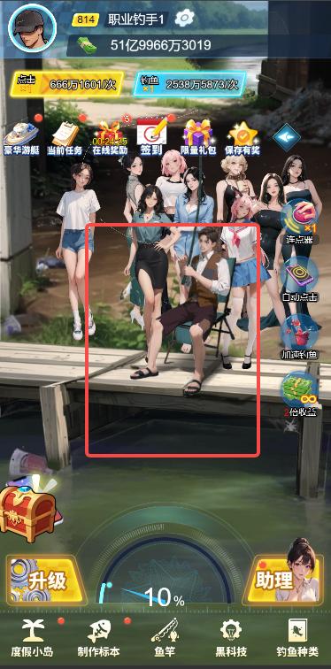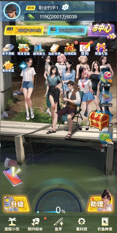 3.聊天系统+助理系统,可以通过主线或者金币来解锁各种美女。一方面可以解锁美女的动态图鉴,另一方面美女的升级能够帮忙提升钓鱼收益的产出效率。