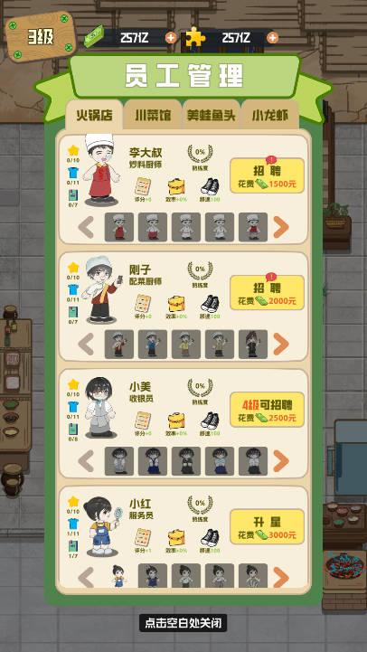 3、游戏拥有数百个员工皮肤,所有皮肤都可以免费解锁,你可以按照自己的喜好随意装扮你的店铺。