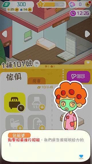是一款精彩乐趣的模拟经营闯关游戏,玩家在游戏中拥有众多的闯关玩法,经营模拟相当的具有趣味性,乐趣多多的拥有一片属于自己的公寓,乐趣无限的感受当房东的极致欢乐,趣味的章节内容玩起来相当的解压刺激开启属于你的经营挑战!玩家来到游戏中当上了房东进行销售拿租金赚红包还有观察租客的日常生活,玩家可以给自己的出租屋添加各种各样的东西让在出租价格上涨!