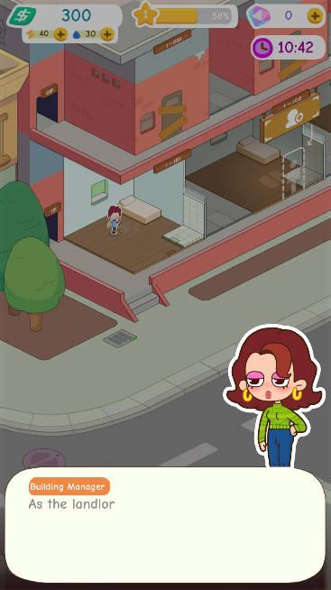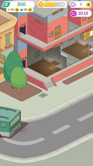 这是一个模拟当房东来经营公寓的游戏,非常经典的玩法,在这里玩家称为房东,你可以解锁免广告模式,不断地招纳更多的租客来这里租房子,还可以扩大你的房屋面积!