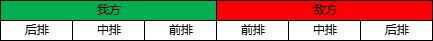 两军对阵时,战场站位为:我方后排-我方中排-我方前排VS敌方前排-敌方中排-敌方后排,如下图所示