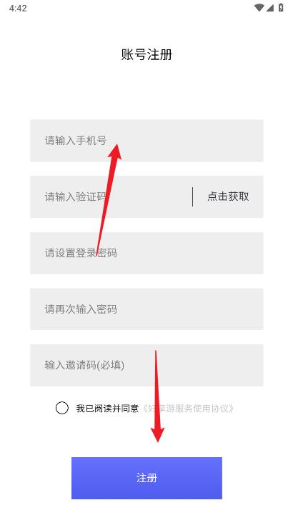 1、下载游戏打开选择注册