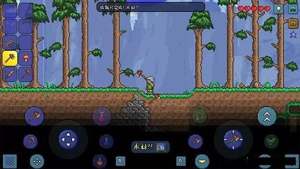 1、新手进入到游戏中,我们只拥有三个工具,斧子、镐子和剑,在地面上白天我们会遇到史莱姆等敌人,晚上会有僵尸、恶魔之眼等敌人。