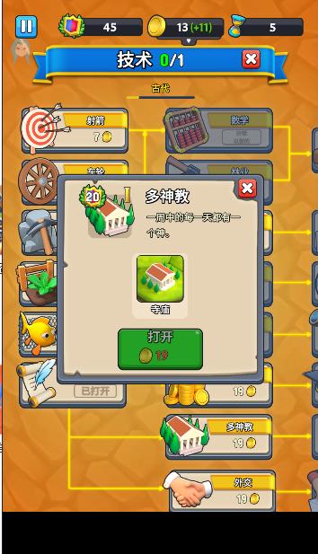 外交与战争: 玩家可以与其他文明建立外交关系,进行贸易、结盟或宣战。