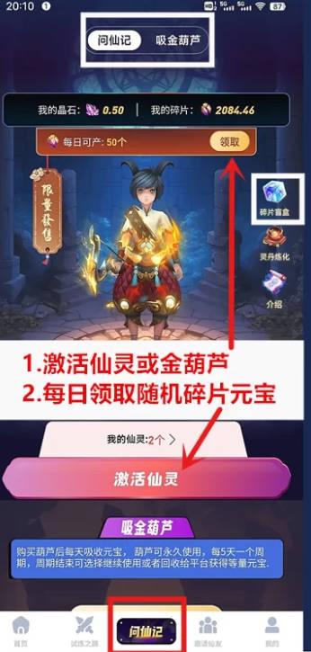 玩家的日常活动之一就是进入问仙记,点击领取,通过观看广告来积累碎片。