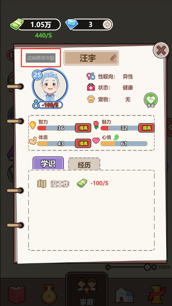 2、年龄修改:点开人物面板,左上角可以修改任意角色年龄,修改的年龄尽量合理