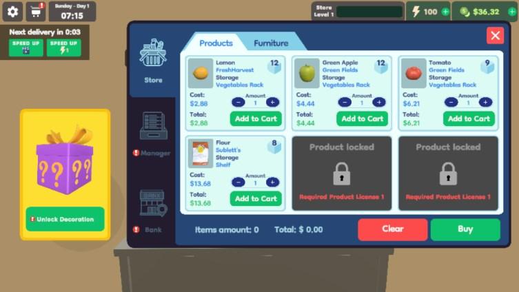 建造和定制你的超市:设计你的布局,选择产品,创造完美的购物环境来吸引顾客。