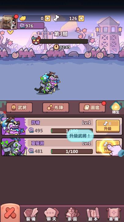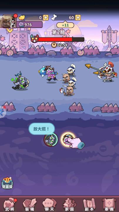 玩家可以在游戏中收集多种三国时期的武将角色,每个角色都有独特的技能和属性。通过战斗获取经验和资源,玩家可以升级武将,提高他们的战斗力和技能效果。