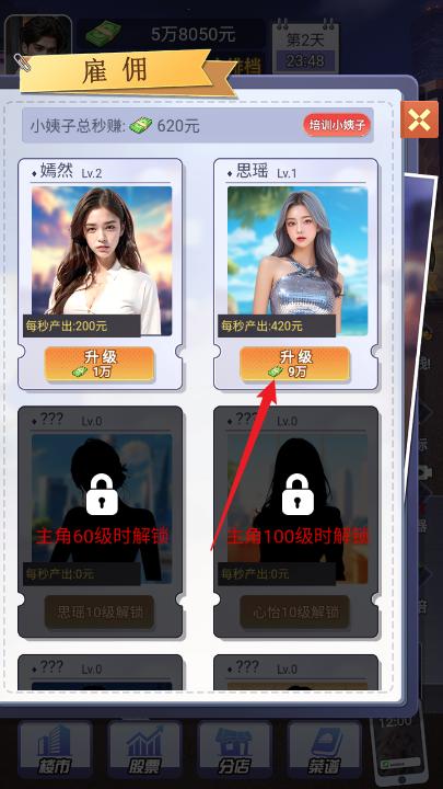 3、然后需要升级主角等级才可以解锁更多的小姐姐