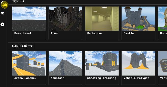 进入这款游戏,玩家们需要选择一个地图,根据不同的地形模型,你也可以建造不同的游戏建模,在游戏的建模方面还是非常丰富的,在游戏的右上方可以选择不同的人物或者是武器等一些设定,这些设定都好比是一个配件一样,需要玩家们自由的搭配,建造一个属于自己的游戏玩法!