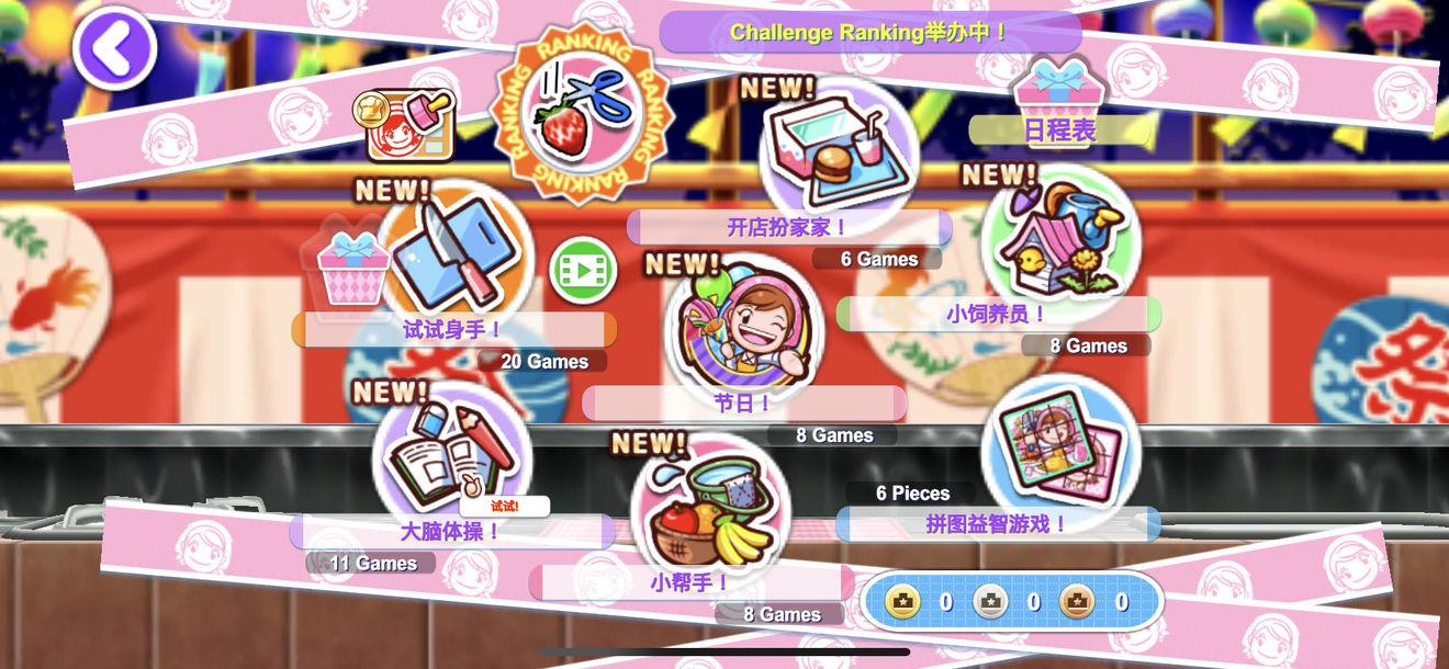 游戏过程中,在“大家一起来烹饪”模式中菜式选择画面的最下方会出现新的锅盖按钮,选择这个模式后会进入极限挑战模式,在此模式中的料理过程不能出现任何的失误,否则会直接导致失败。(妈妈的服装也会有变哦~)