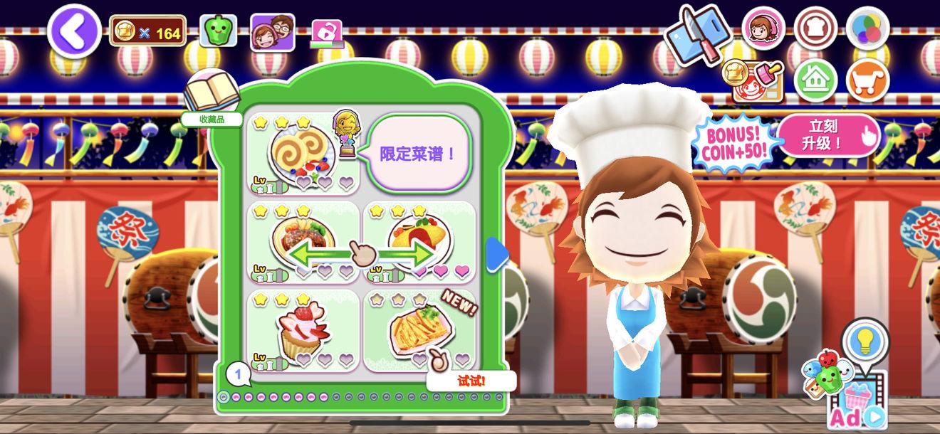 相比前作,总共可以收集多达32种菜式的图片。之前在料理挑战模式中获得的大量装饰道具在这里可以派上用场了。