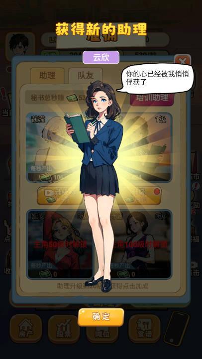 点击秘书icon(增加每秒收益,后期还可以提升点击收益)