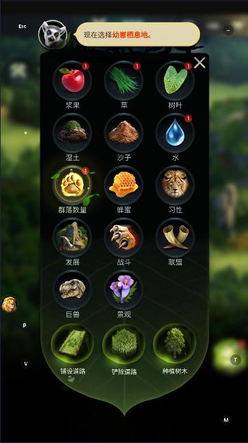 画面上游戏使用了2D立绘,宣传画面中的那些立体模组几乎不会呈现,在观感上我觉得平面的画面或许会更优秀一些,因为玩家刚开始的土地就是有限的,场景也差不多被森林所覆盖,立体风格反倒没有平面的那股韵味。画面上最好是增加动物之间的走动,否则整个地图可能就会很空旷,领地内有了很多的动物却看不到出没会显得很奇怪。
