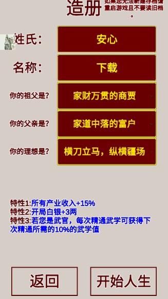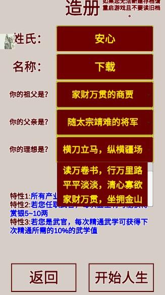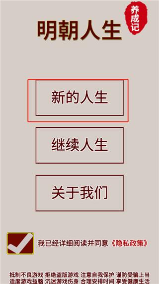 1、打开在本站下载的明朝人生养成记,点击开启新的人生