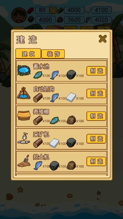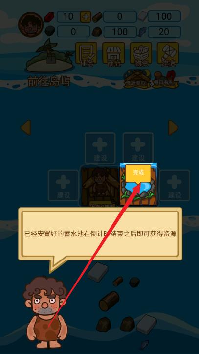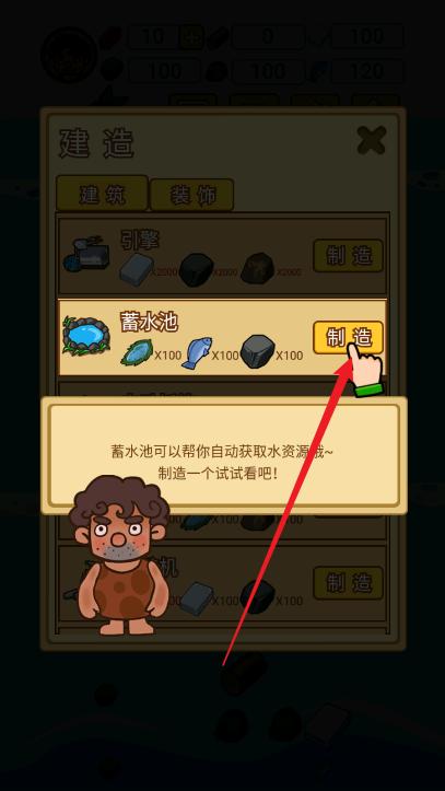 4、我们已经有足够的物资建造蓄水池了!点击建造按钮