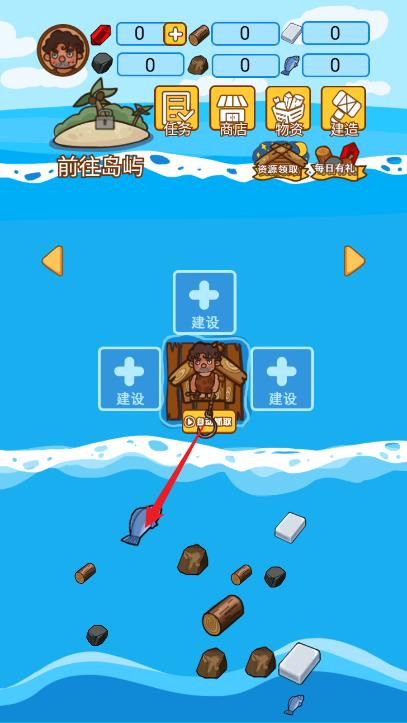 收集资源:使用抓钩收集海面上漂流的物资,如木板、棕榈叶、塑料等。这些资源是建造工具和设施的基础。