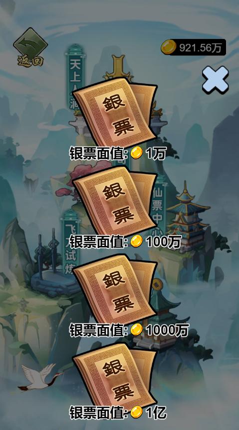 彩蛋1:游历中连续点击仙鹤,仙鹤飞走后,会出现一个宝石,点击宝石可获得大量金币。
