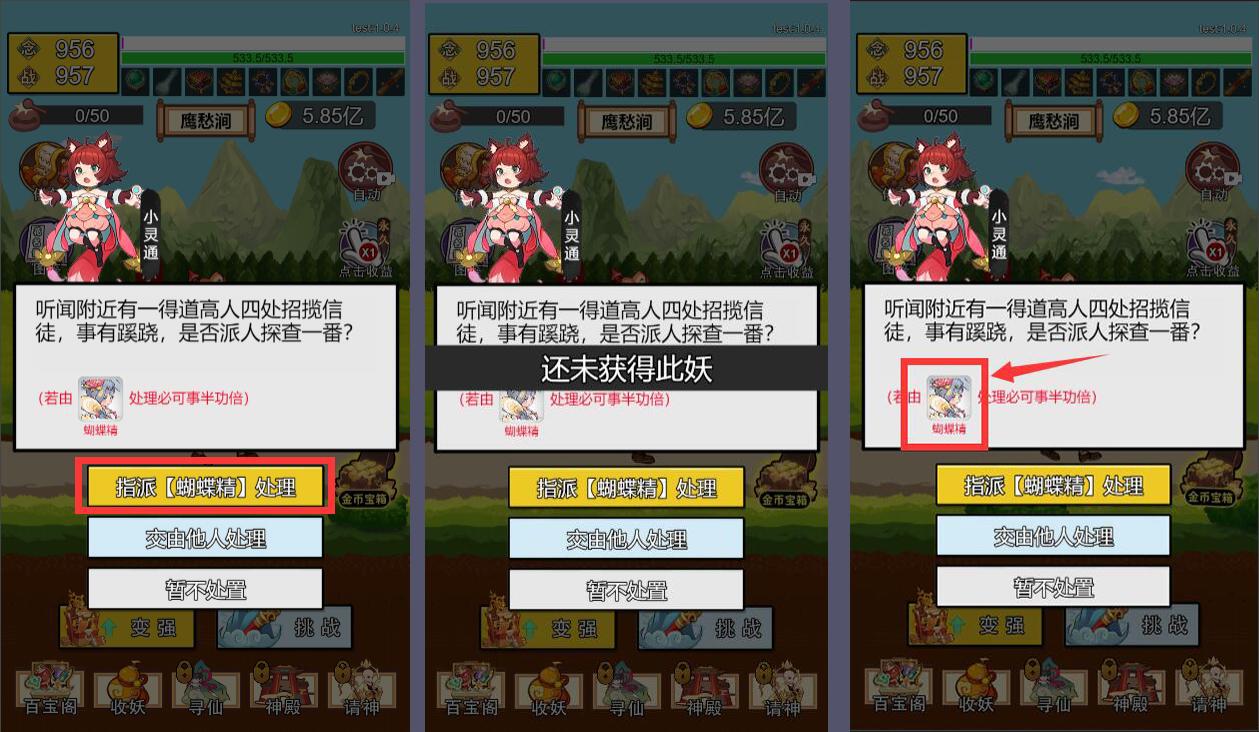 第2步:系统提示还未获得此妖。