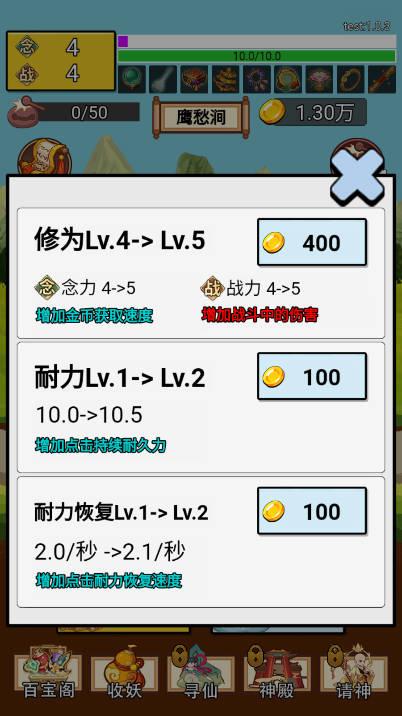 注:修为等级越高,获得金币越多,可以多升级下修为,再去触发彩蛋。