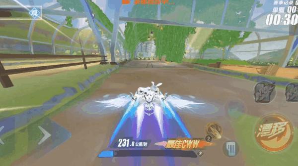 提前漂移撞碎木板近道,注意在断层处快速出弯并利用惯性落回赛道,落地后立即向左小漂通过直角弯。接着向右小漂接CWW 喷通过弯道即可。期间注意漂移的衔接速度。