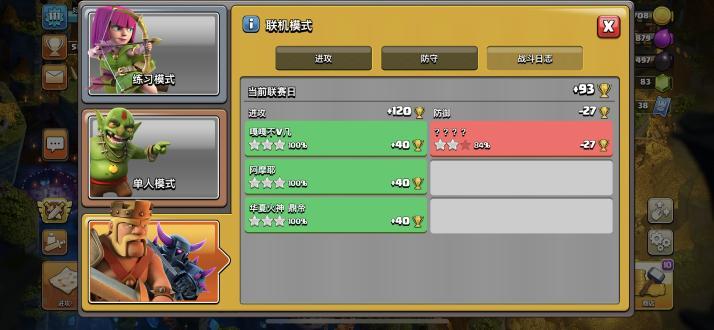 2、抢钱:同样是刚才的小地图,左边的就是啦,每搜索一次,你会付出相应的金币,得到对应杯数范围的人的阵(就是别人的家。),打这个来钱比较多,但是有3分钟的时间限制。具体抢钱的方法不在这里讲,后边再说。