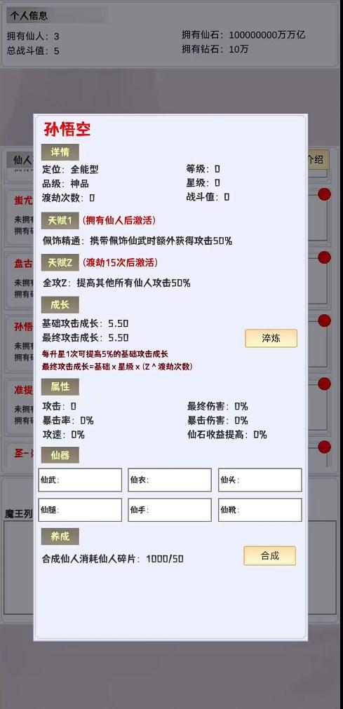 这里最牛逼的就是圣盘古了,圣孙悟空比他还差一点点。有了就升他,全部资源怼他,不会让你失望的。前期没有的话就升红,有啥用啥,优先升挑战仙人拿圣人物碎片,后面人物都会有的,就是早晚的事。我是0氪,也不开挂哈。