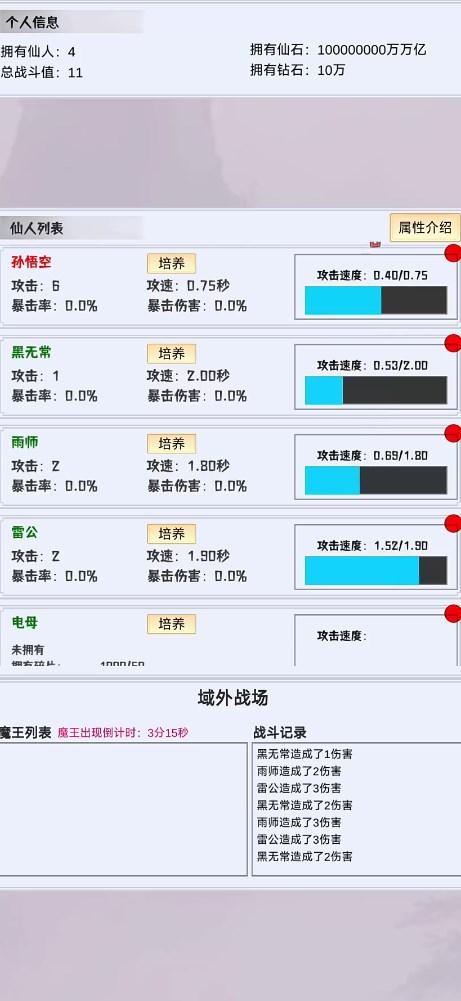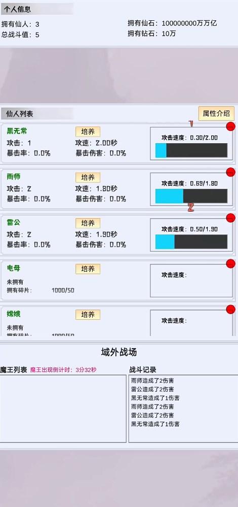 然后挂机等仙石,100万商店继续买卷继续抽人物。